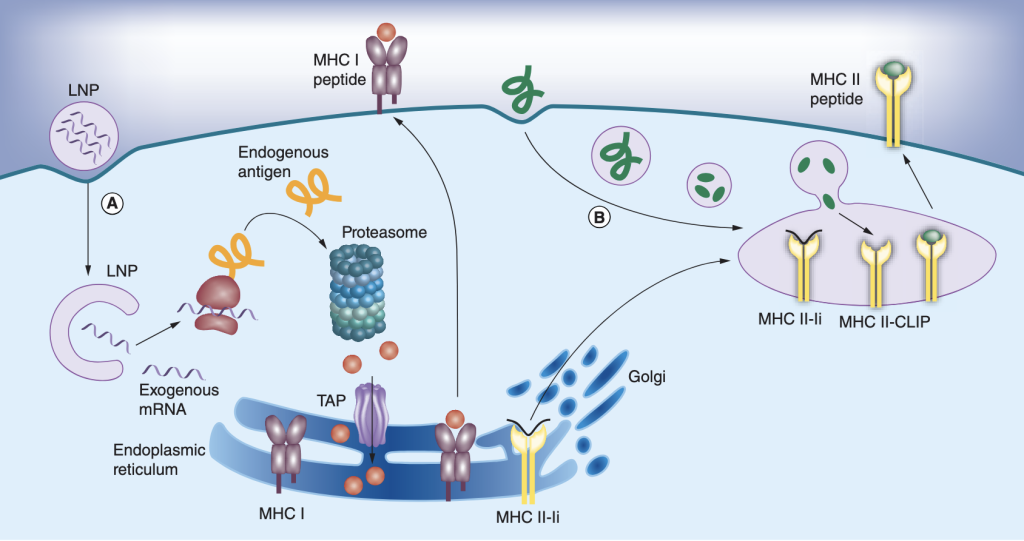 One of the images demonstrating the exotic technology, from the above PDF: Figure 2. Antigen presentation on MHC I and II pathways in dendritic cells.
