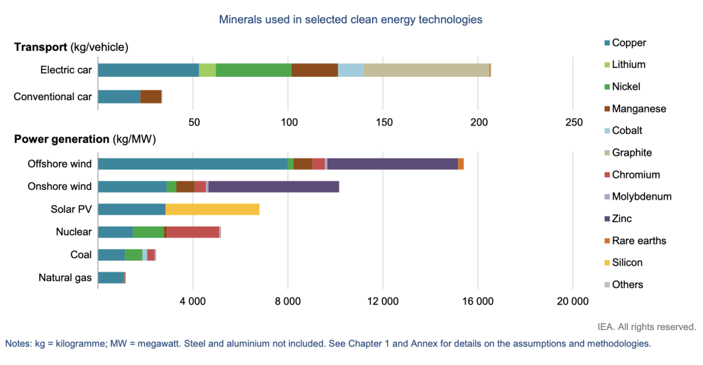 This one is very interesting, showing the incredible usage of rare Earth minerals used in “sustainable”, “green” energy: The Role of Critical Minerals in Clean Energy Transitions, International Energy Agency – Report with lots of graphs showing the amount of rare minerals used for various forms of transportation and power generation, etc.